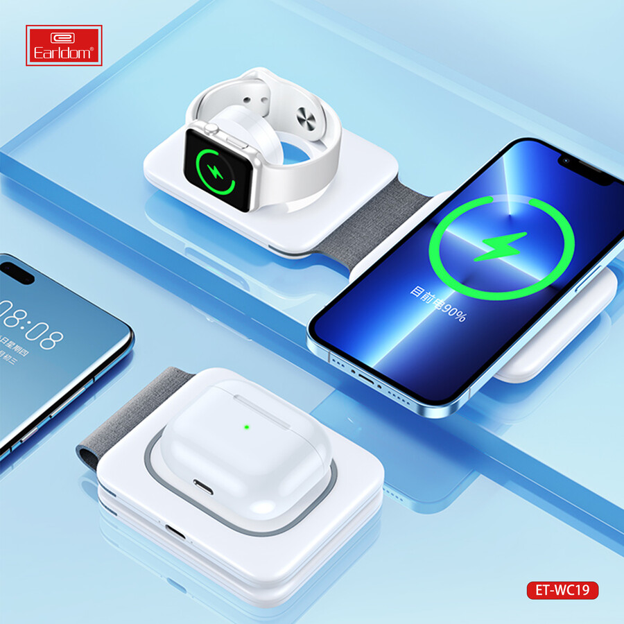 Купить Беспроводное зарядное устройство 3в1 Earldom ET-WC19 для смартфонов/Apple Watch, белый - 00-00047996 оптом