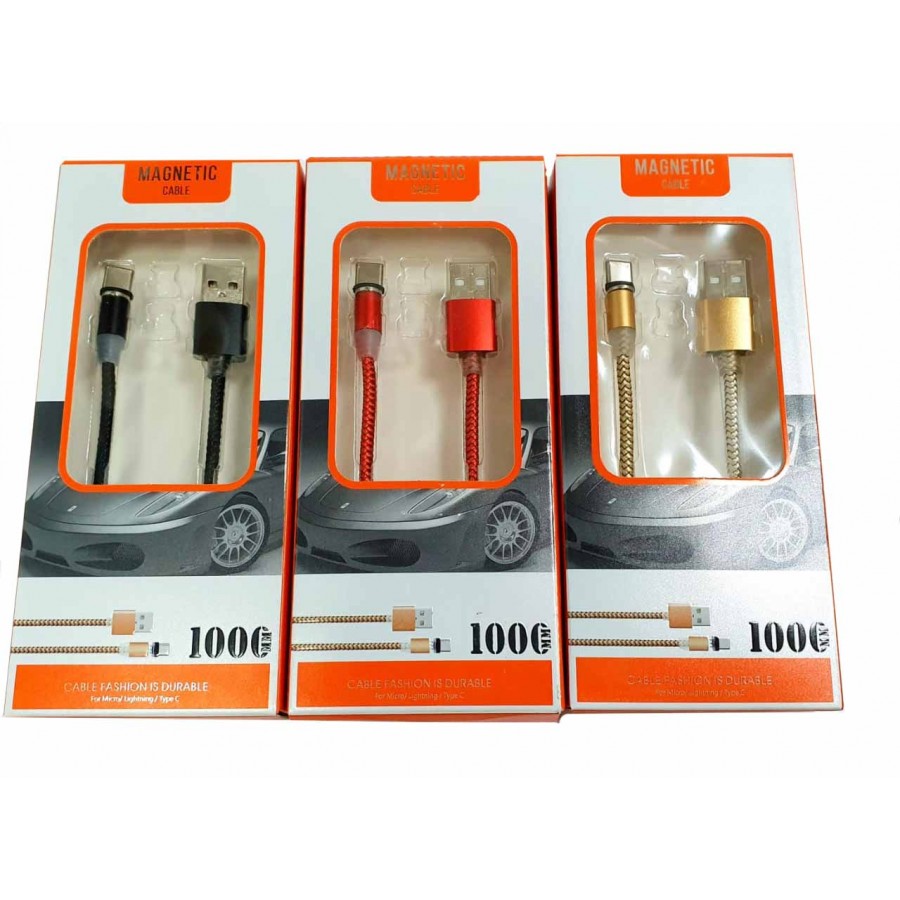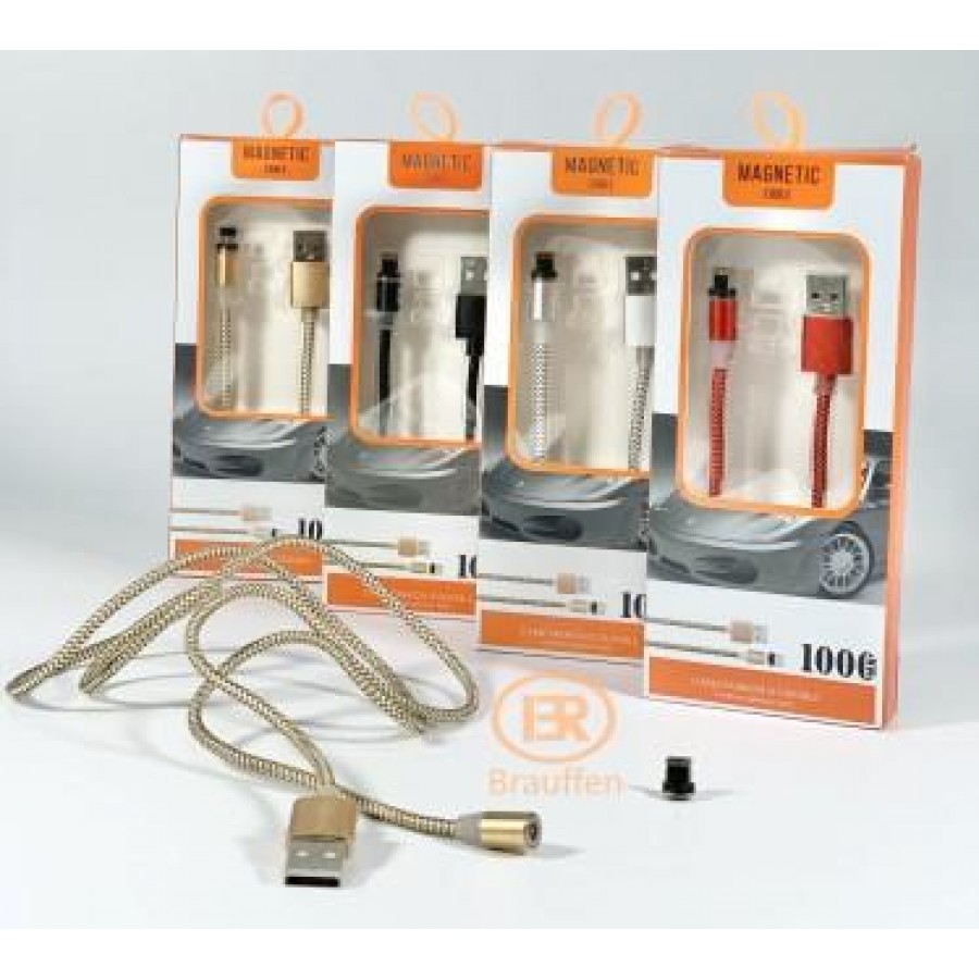 USB кабель магнитный для Type C, металл матерчатый, золотой. в коробке